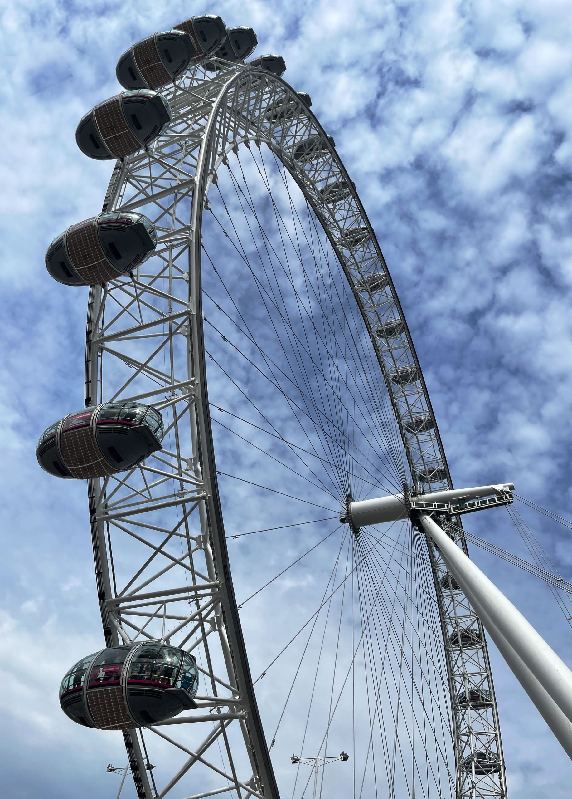 As part of EXPO 2030, the London Eye has been modified so each carriage now has solar panels on the top and bottom. This sustainable modification allows the energy from the sun to spin the wheel. Storage batteries provide power for the evening and night time rides.